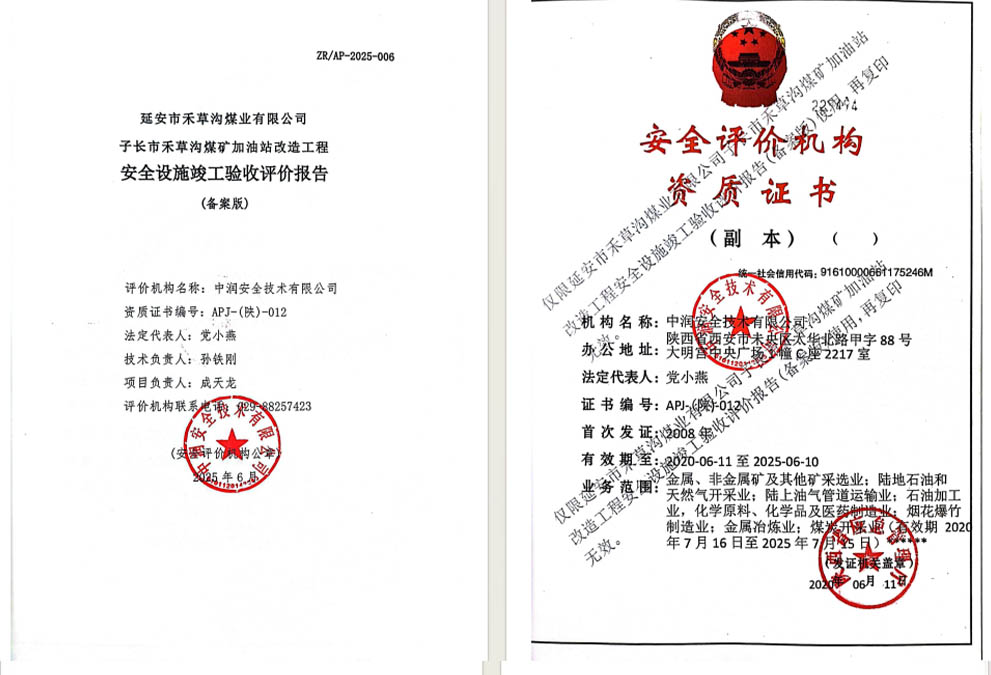 延安市禾草溝煤業(yè)有限公司子長(zhǎng)市禾草溝煤礦加油站改造工程安全設(shè)施竣工驗(yàn)收評(píng)價(jià)