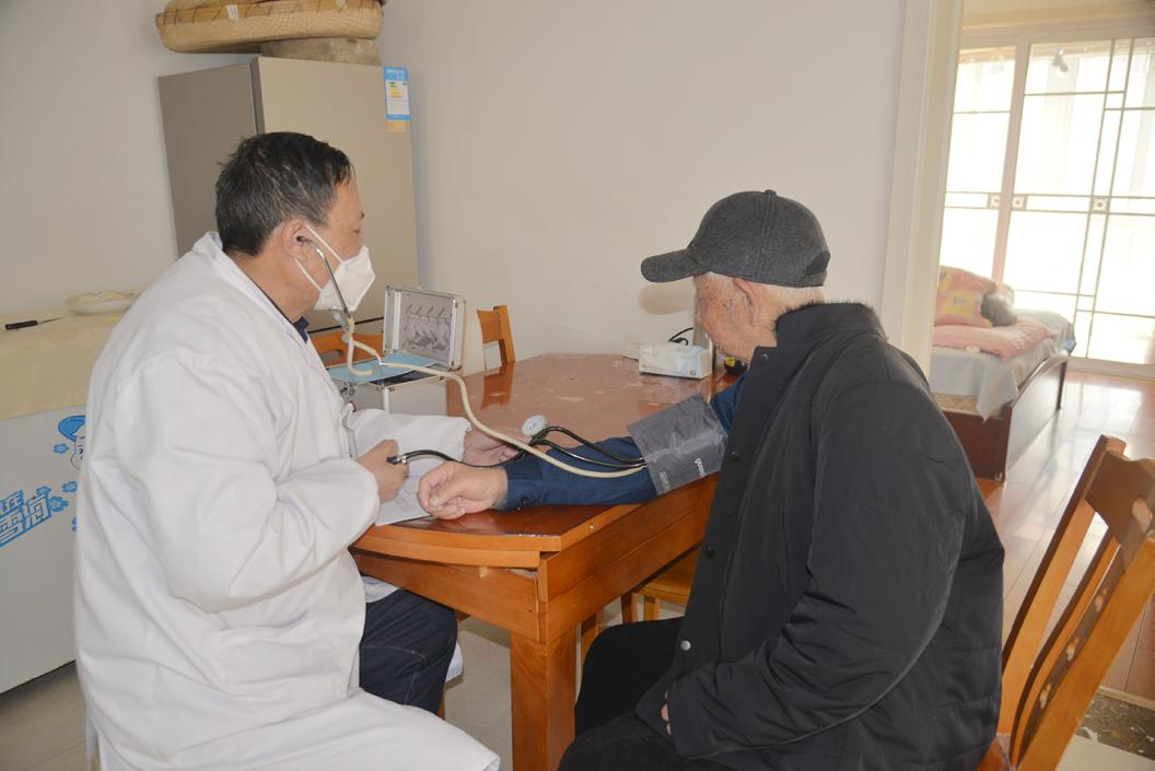 近日,灌東鹽場(chǎng)黨群工作部工作人員和家庭保健醫(yī)生來到行動(dòng)不便的離休干部家中,進(jìn)行上門健康體檢。 -